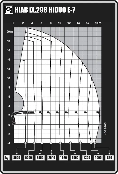 9900 kg @ 4.6m / 1720 kg @ 19.6m /
