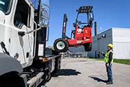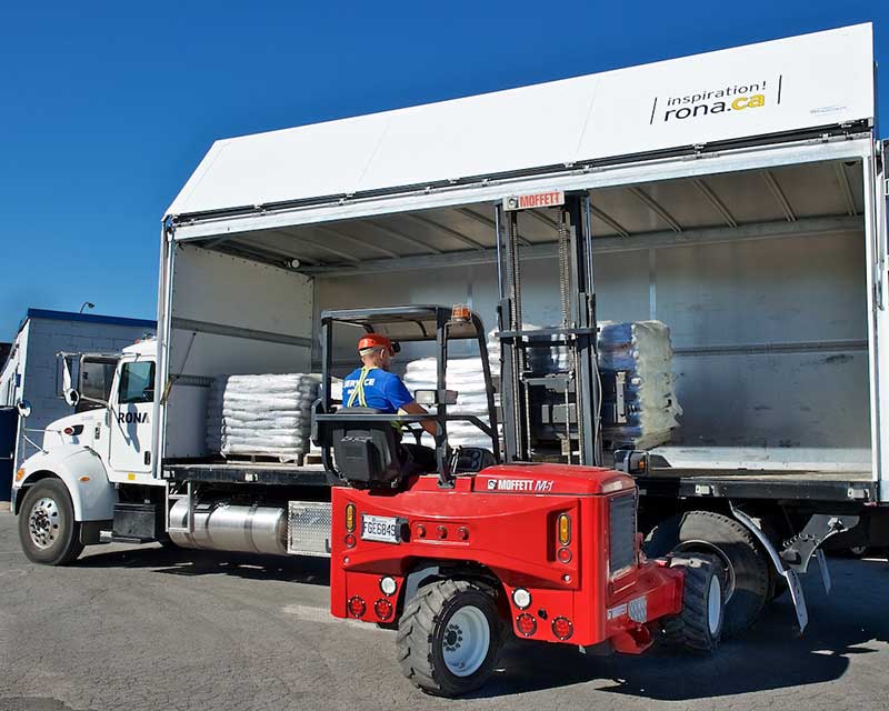 If your truck-mounted forklift does this, carries your delivery system right along with you, is able to tackle any off-road conditions, and can get around tight spots or down narrow spaces to deliver directly to your customers’ sites it can only be a Moffett. Pantograph reach with Lift Assist™ arms? A Moffett. The ability to load and unload from one side of the truck without ever turning the truck around, or start, mount or dismount without ever climbing on the forklift? A host of innovative features that make your load-moving jobs faster, easier, safer, more efficient, require less maintenance, save you fuel, time and money every day and have the highest resale value in the industry? It can only be a Moffett – Canada’s #1 selling brand.