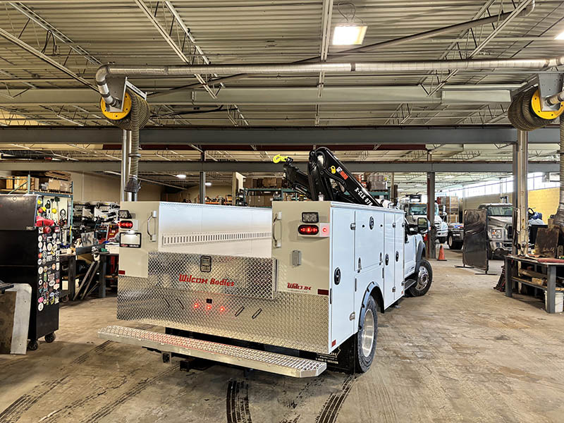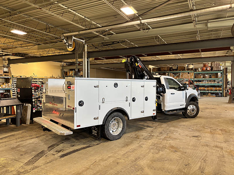 How a Service Truck Should be! All cabinets LED lighting, 3000 Watt power inverter with rear mounted Receptacles, corner mounted LED Work Lights